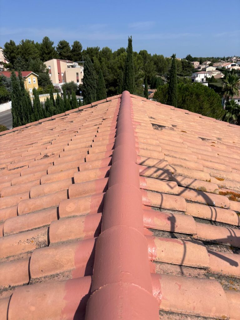 Le traitement hydrofuge coloré protège votre toiture contre l’humidité, les mousses et les agressions climatiques. Il permet également de raviver la couleur de votre couverture et d’améliorer l’aspect général de votre maison, tout en prolongeant la longévité du toit.